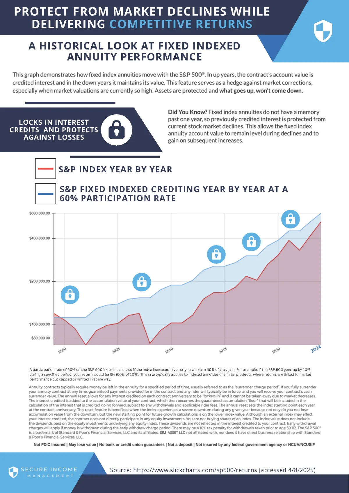 During years when the S&P 500 experienced steep drops, the FIA stayed level and protected prior gains.